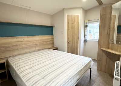 Double bedroom – double bed with mattress, fitted double wardrobe, dressing table, bedside tables & over bed shelving.