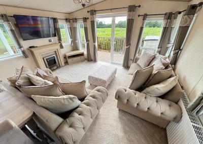 Beaumont Lodge for sale at Castle View Caravan Park in Carnforth. This beautifully presented 2-bedroom lodge offers spacious, high-end living in a peaceful, sought-after location on the edge of the Lake District and Yorkshire Dales.