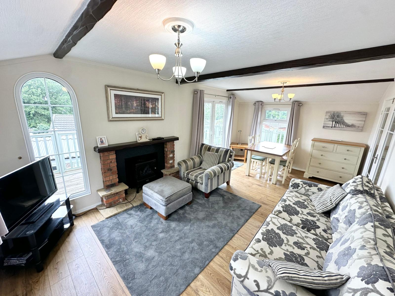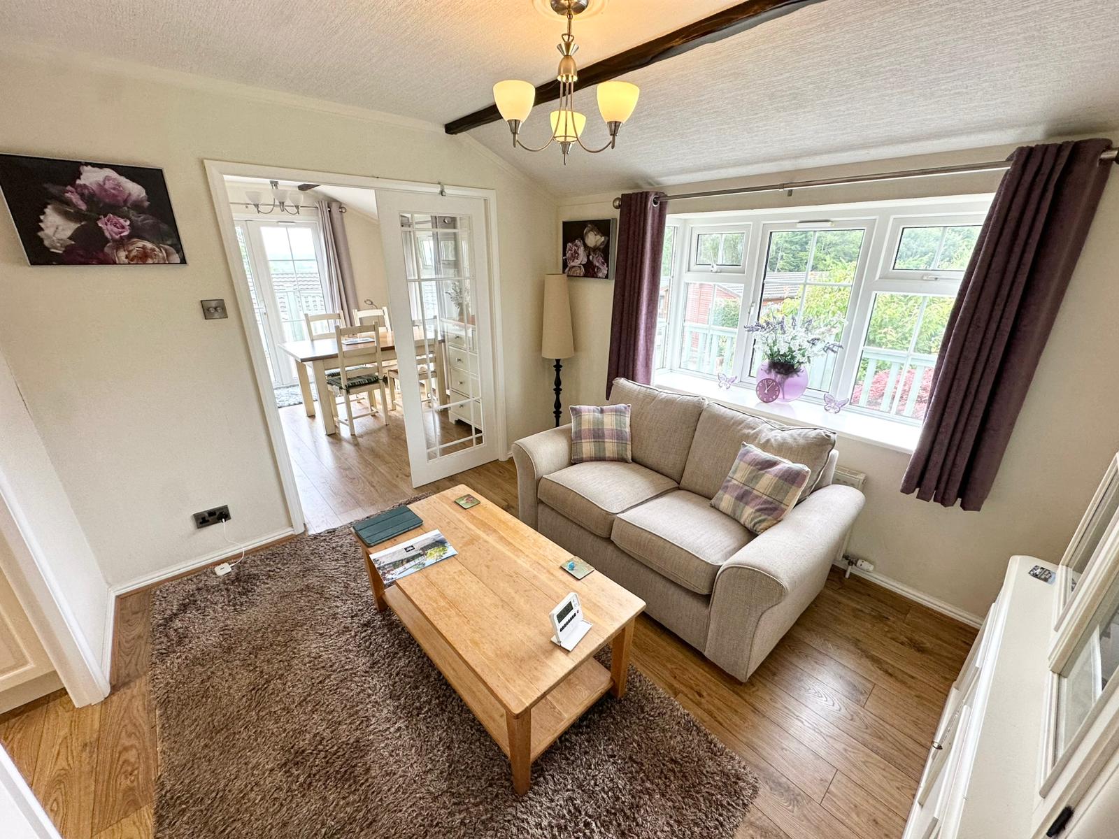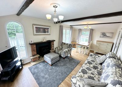 This beautiful Lakeland Lodge is ideally positioned within the park, enjoying a prime location with open countryside views to the rear. The lodge benefits from private parking for two cars and a generous enclosed garden, making it perfect for entertaining as well as safe and practical for children and dogs. To the rear of the garden there is a substantial 12 x 10 storage shed with electric, alongside exterior hot and cold water and electric sockets to both the front and rear of the lodge. A spacious UPVC decked area with integrated electric lighting provides an ideal space to relax and enjoy the peaceful surroundings.