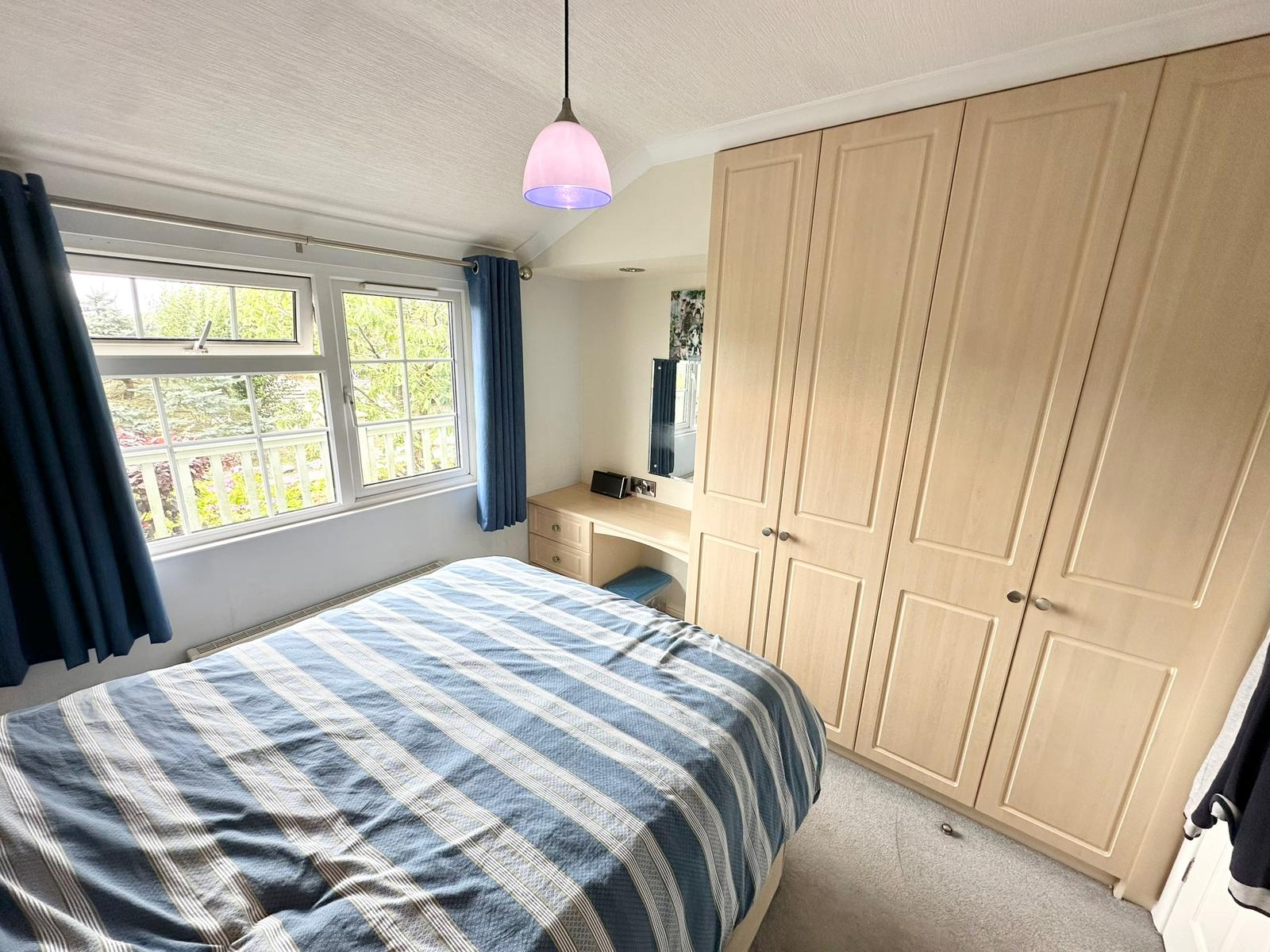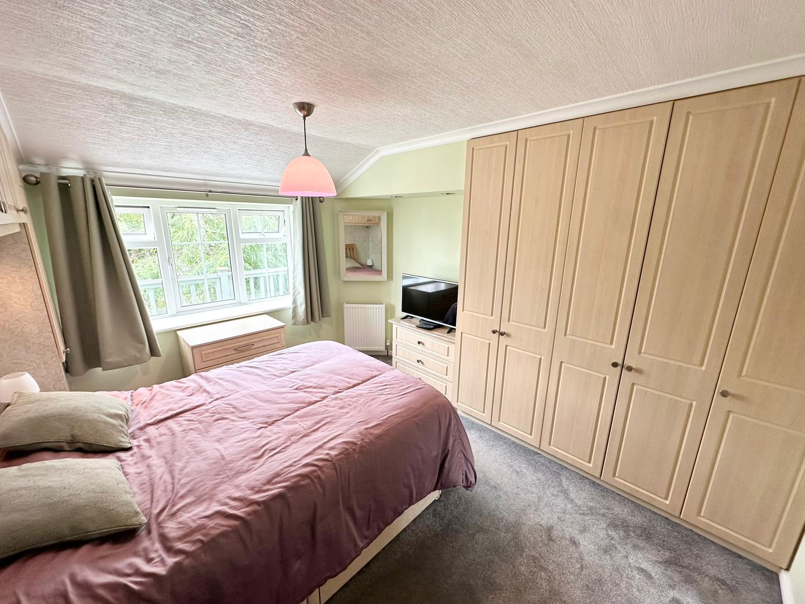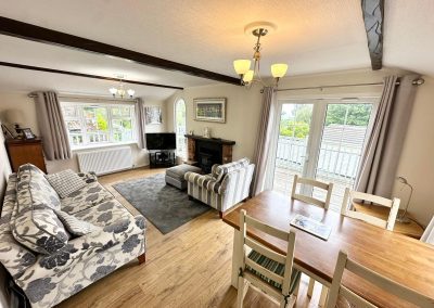 The interior is finished to a high standard with solid oak skirting boards, architraves and doors throughout. There are two well proportioned bedrooms, both with fitted wardrobes. The main bedroom benefits from a fully tiled ensuite shower room, while a second fully tiled family bathroom serves the rest of the lodge.