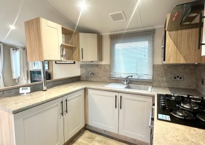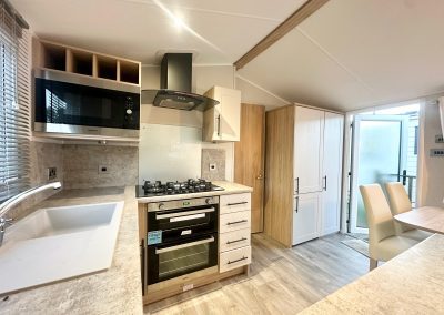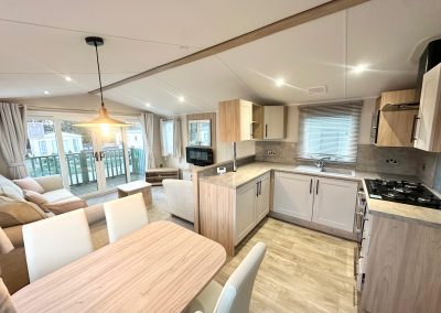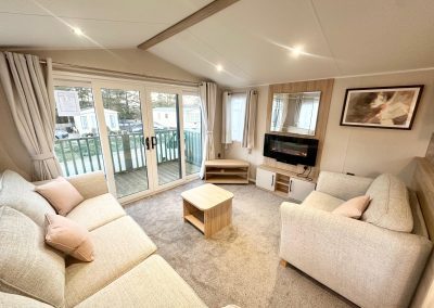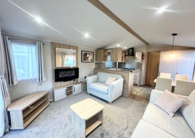 Double glazing and a combi boiler central heating system ensure comfort in all seasons, while smart storage solutions and USB sockets around the home add modern convenience. With capacity to sleep up to six, this caravan blends holiday home luxury with relaxed family living.
